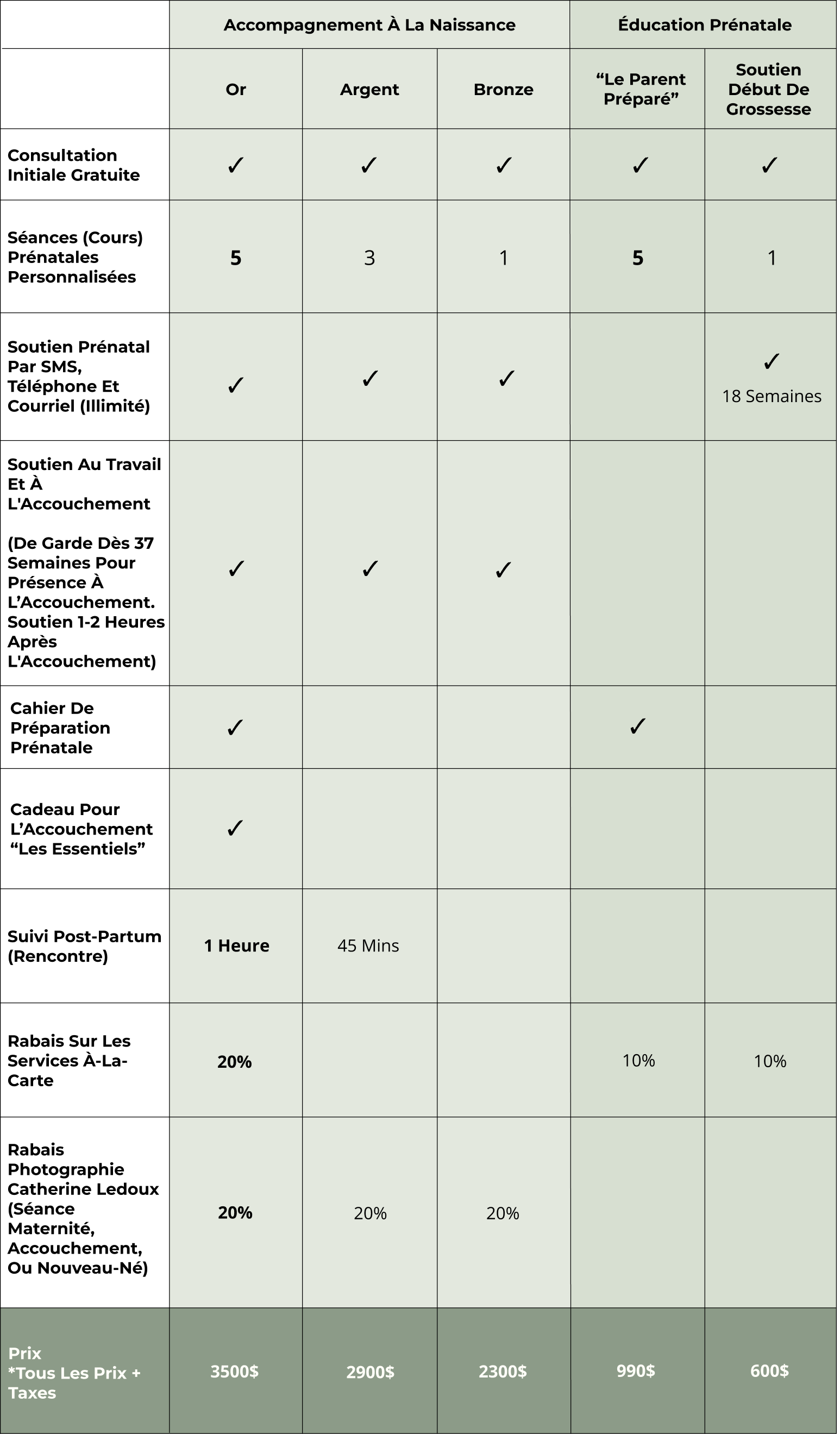 10% de rabais sur les Forfaits d’accompagnement à la naissance (Or, Argent, Bronze) ou sur le Forfait “Le Parent Préparé”